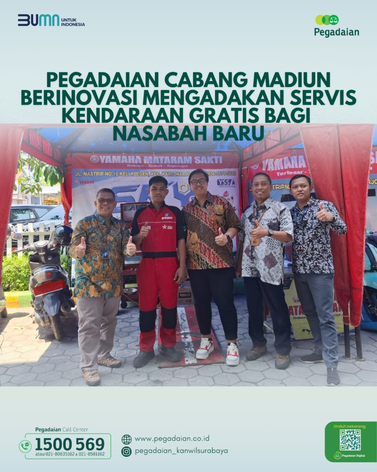 Dengan inovasi seperti Servis Murah dan Servis Kendaraan Gratis, PT Pegadaian Cabang Madiun memperlihatkan komitmen dalam memberikan layanan yang bermanfaat bagi masyarakat.