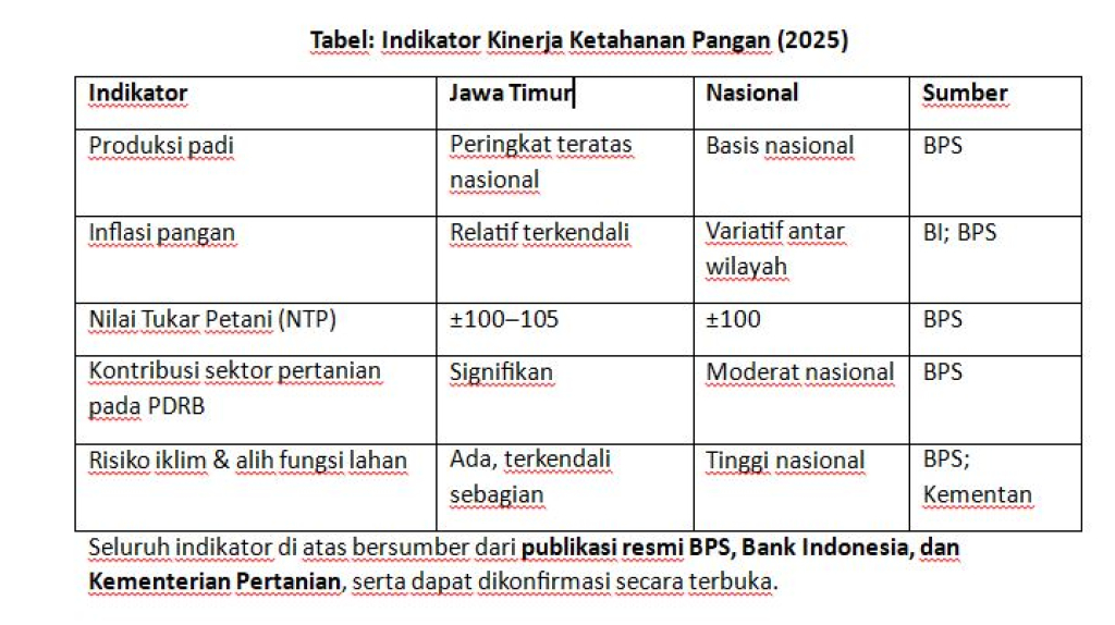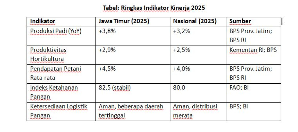 Dalam konteks nasional, ketahanan pangan Indonesia pada 2025 tidak dapat dilepaskan dari peran Jawa Timur. Ini memberi posisi tawar strategis bagi provinsi, sekaligus tanggung jawab besar dalam menjaga pasokan dan stabilitas harga.