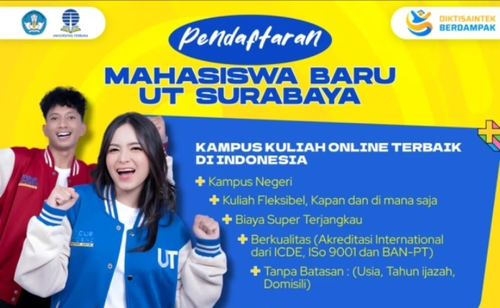 SURABAYA – Universitas Terbuka (UT) Surabaya resmi membuka pendaftaran mahasiswa baru untuk Semester Genap Tahun Akademik 2025/2026.