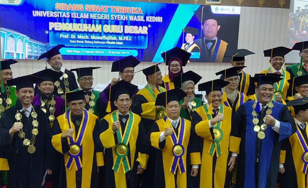KEDIRI — Universitas Islam Negeri (UIN) Syekh Wasil Kediri kembali mencetak sejarah akademik. Prof. Dr. Moch. Muwaffiqillah, M.Fil.I. resmi dikukuhkan sebagai Guru Besar di bidang Filsafat Islam, dalam Sidang Senat Terbuka yang digelar pada Rabu (11/2/2026).