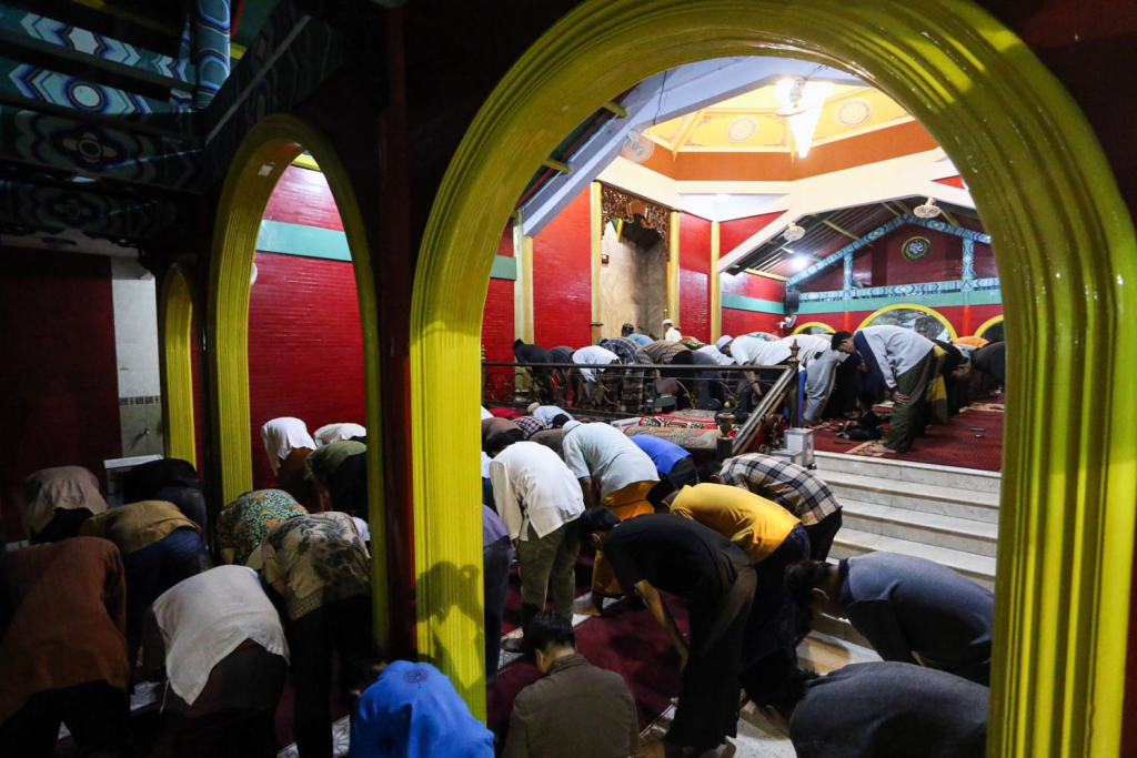 SURABAYA - Umat Muslim di Surabaya melaksanakan sholat Tarawih perdana bulan Ramadhan di Masjid Cheng Ho Surabaya, Kamis (18/2/2026). Ibadah berjamaah tersebut menandai dimulainya rangkaian aktivitas Ramadhan di masjid dengan arsitektur bernuansa Tionghoa itu.