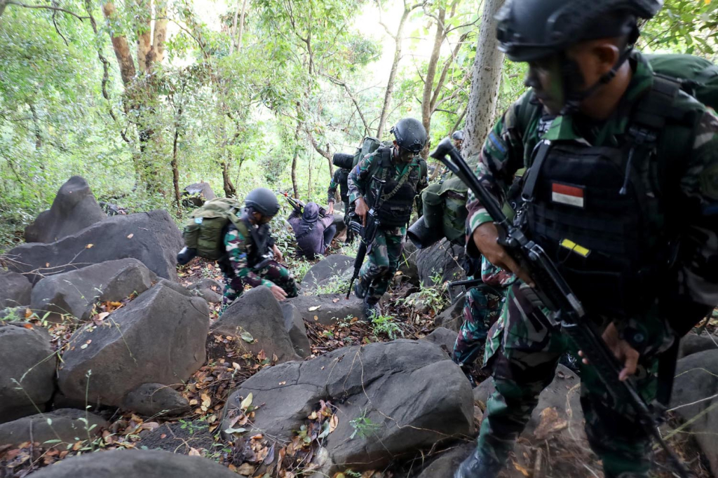 SITUBONDO - Prajurit Brigade Infanteri 2 Marinir terus menggembleng kemampuan tempur dalam Latihan Triwulan yang digelar di Pusat Latihan Pertempuran Hutan Baluran, Karangtekok, Situbondo, Jawa Timur, Jumat (10/4/2026). Latihan berlangsung dengan skenario lapangan yang dinamis, menguji kesiapan personel menghadapi berbagai situasi pertempuran.